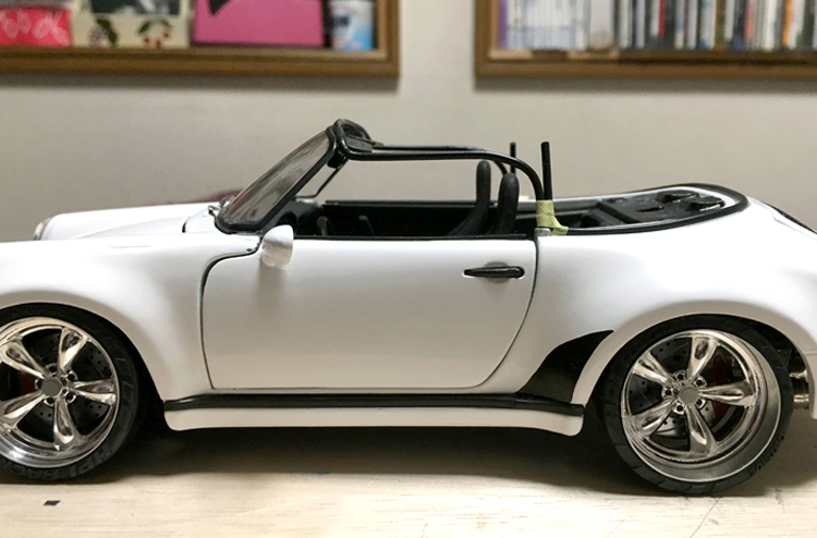 塗装は全剥離ののち自動車用のプラサフを吹いて金型の不自然なおうとつやバリを極力、修正したのだが限界は低めかな、ライト廻りなどもっと修正すべきだったかも知れない。